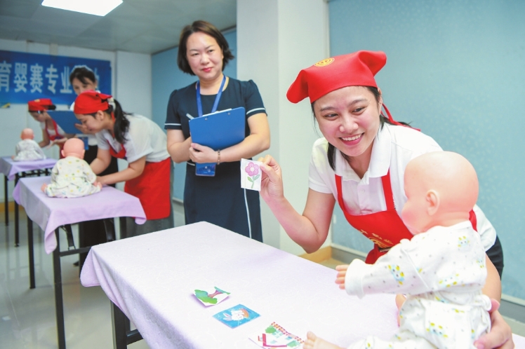 近日,在??谑校捞m)人力資源服務(wù)產(chǎn)業(yè)園,由入駐企業(yè)海南待君職業(yè)培訓(xùn)學(xué)校協(xié)辦的一場(chǎng)嬰幼兒發(fā)展引導(dǎo)員(育嬰師)培訓(xùn)班正式結(jié)業(yè)。30名經(jīng)過(guò)專業(yè)培訓(xùn)的育嬰師圍繞測(cè)量體溫、早教游戲等內(nèi)容進(jìn)行了技能大比武,現(xiàn)場(chǎng)150余名學(xué)員與多家企業(yè)達(dá)成求職意向?qū)印?/p>