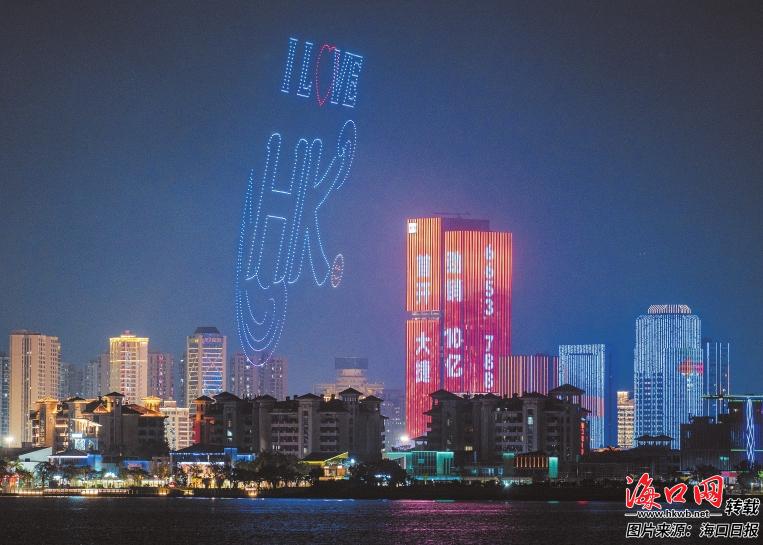 10月8日,2025“夸下??凇辈萜阂魳窌?,無人機(jī)表演秀排列出“I LOVE HK”圖案。記者 石中華 攝