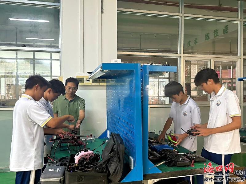 10月16日下午,在海南省機(jī)電工程學(xué)校智能制造(無(wú)人機(jī))產(chǎn)業(yè)學(xué)院,師生在無(wú)人機(jī)應(yīng)用技術(shù)中心上課。記者 肖衛(wèi)香 攝